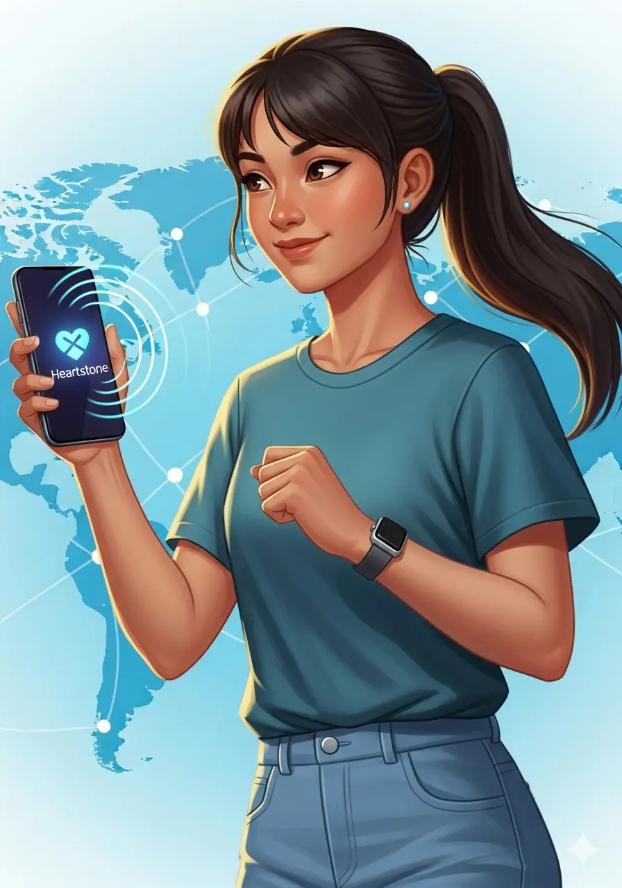 Back home, Maya opened the "Karma Trail" app. She recorded her good deed, then, with a tap, passed her virtual Heartstone to her friend in India, and just like that, the Heartstone flew from her home in Australia across the globe to India!
